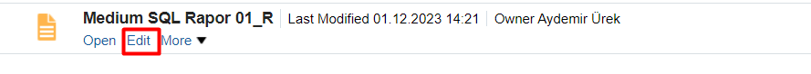 While in catalog view, click on the “Edit” option for the report.